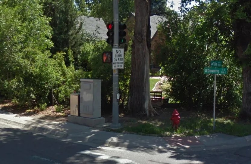 The intersection of South Downing Street and East Yale Avenue.