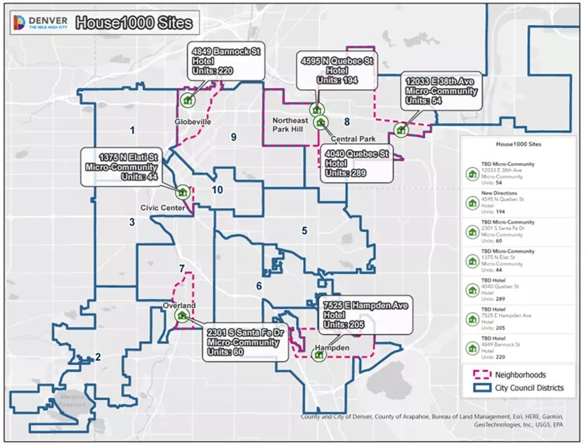 An updated map shows the location of the city’s micro-communities and hotels being used for the All In Mile High initiative.