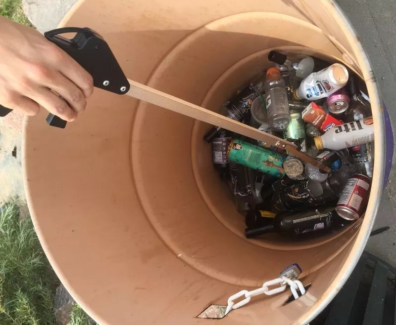 In the process, they’ve become acquainted with the result of “aspirational recycling,” a trend reported by the New York Times. “People will come in here with a piece of garbage and be like, ‘I want this to be recyclable, and I want to recycle so I’m going to recycle it,’ even when it’s not [recyclable],” White explains. This complicates the group’s sorting process, which even under ideal circumstances is rather tedious: With a long-handled grabber, they sift through the contents of the bins, sorting out plastics, glass and aluminum for recycling, transferring waste to the trash.
