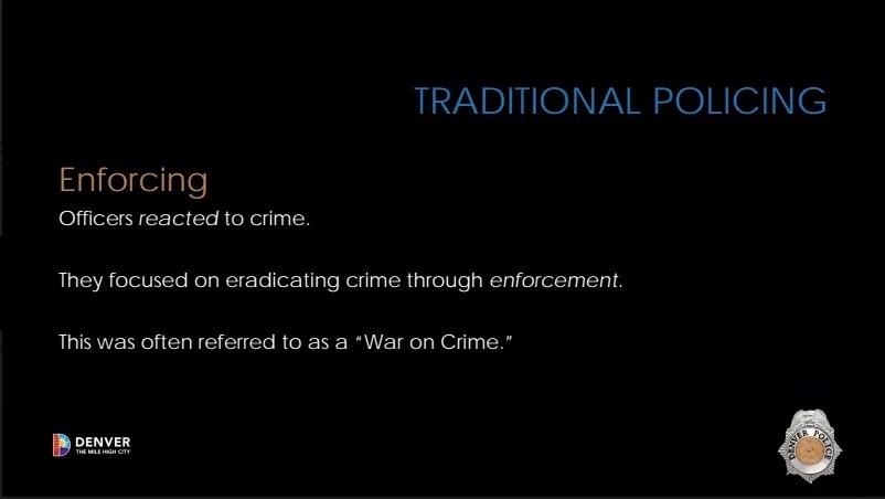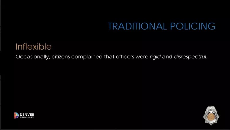 First of all, it’s not just the Denver Police Department, and he made that clear. He thinks policing in America needs changing, and we’re a traditional byproduct of that same culture. And that’s a really important point for us. He doesn’t want Denver police officers to read this article and think, “The Chief believes we’re broken,” because he doesn’t. What he feels is that the traditional form of policing, of which Denver was very representative, had to evolve. We’re in the process of that, and I feel he would say we’re not there yet, but we’re definitely on our way. A lot of things have changed, and we can see ways that the culture has changed.