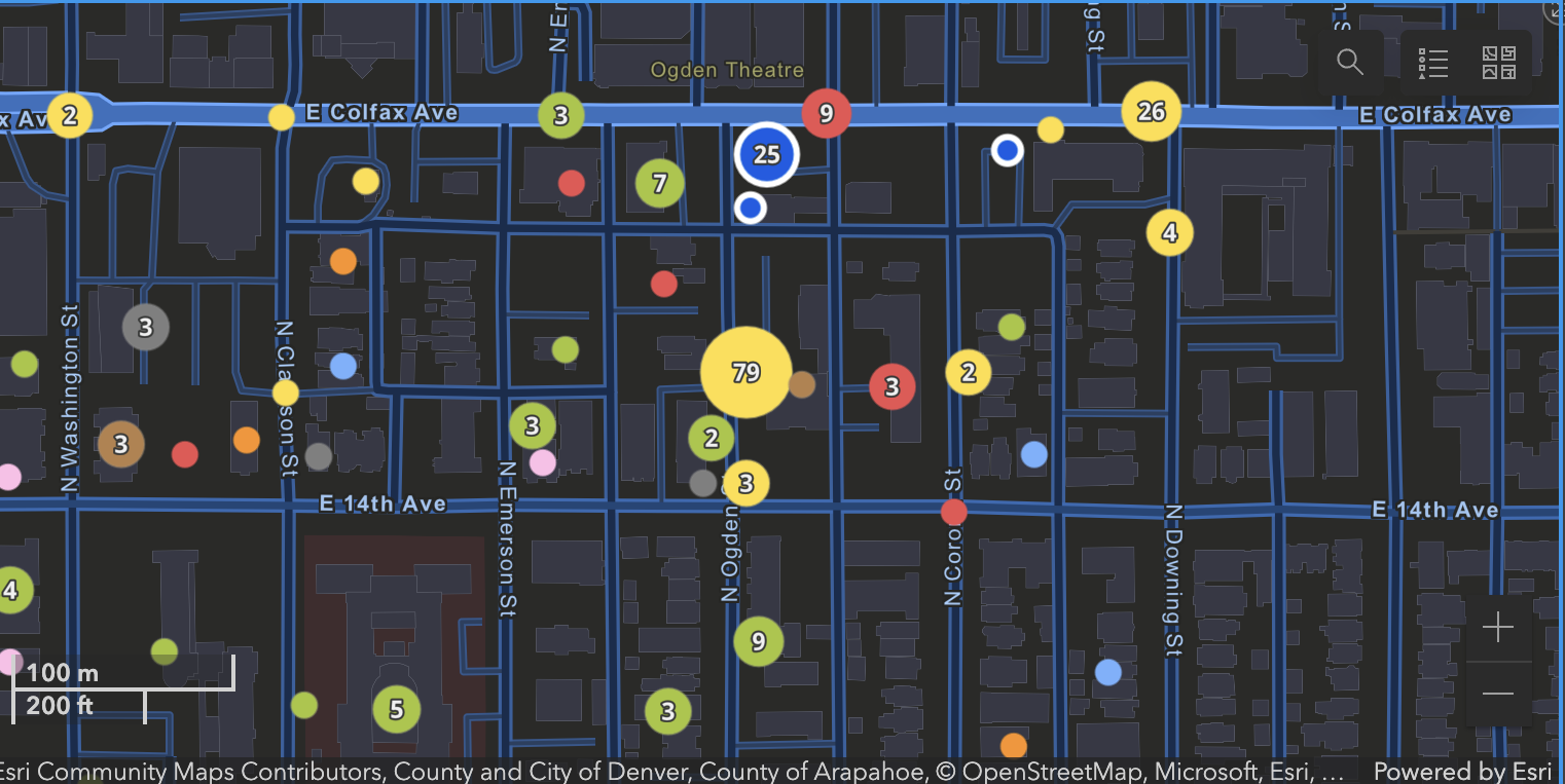 Violent crime has seen a 0 percent change since last year on Ogden Street between Colfax and 14th on a year-over-year basis, according to DPD, while property crime is down by 27 percent, with there being ten fewer property crime offenses this year than last year. However, resource technicians for DPD District 6 provided a crime update at the March 28 town hall showing that overall crime is up since 2023.