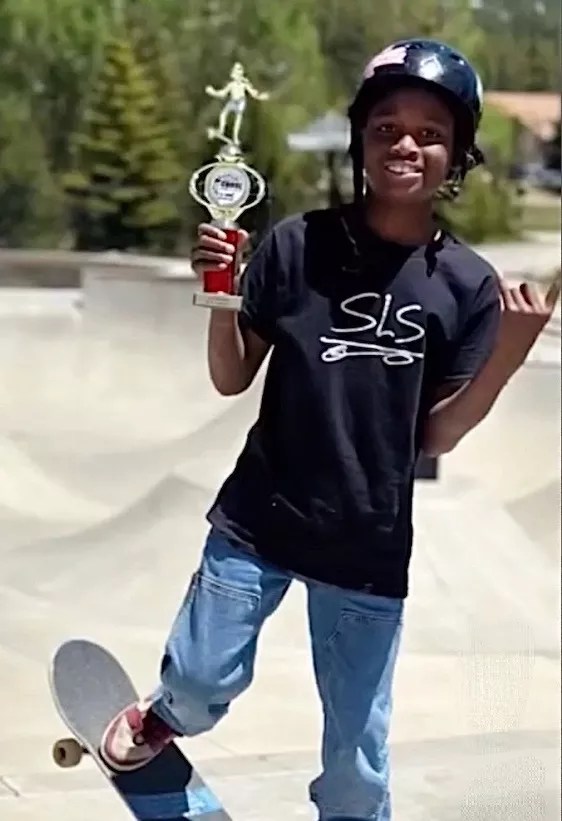 Charleston Davidson after winning first place at a skateboarding competition.
