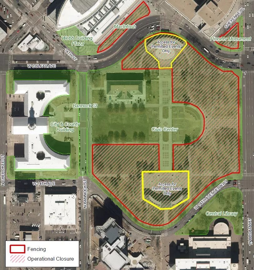 But much of Civic Center Park, about two-thirds of the space, will remain closed, including the entire section next to Broadway, an area of the park that is commonly frequented by people experiencing homelessness.