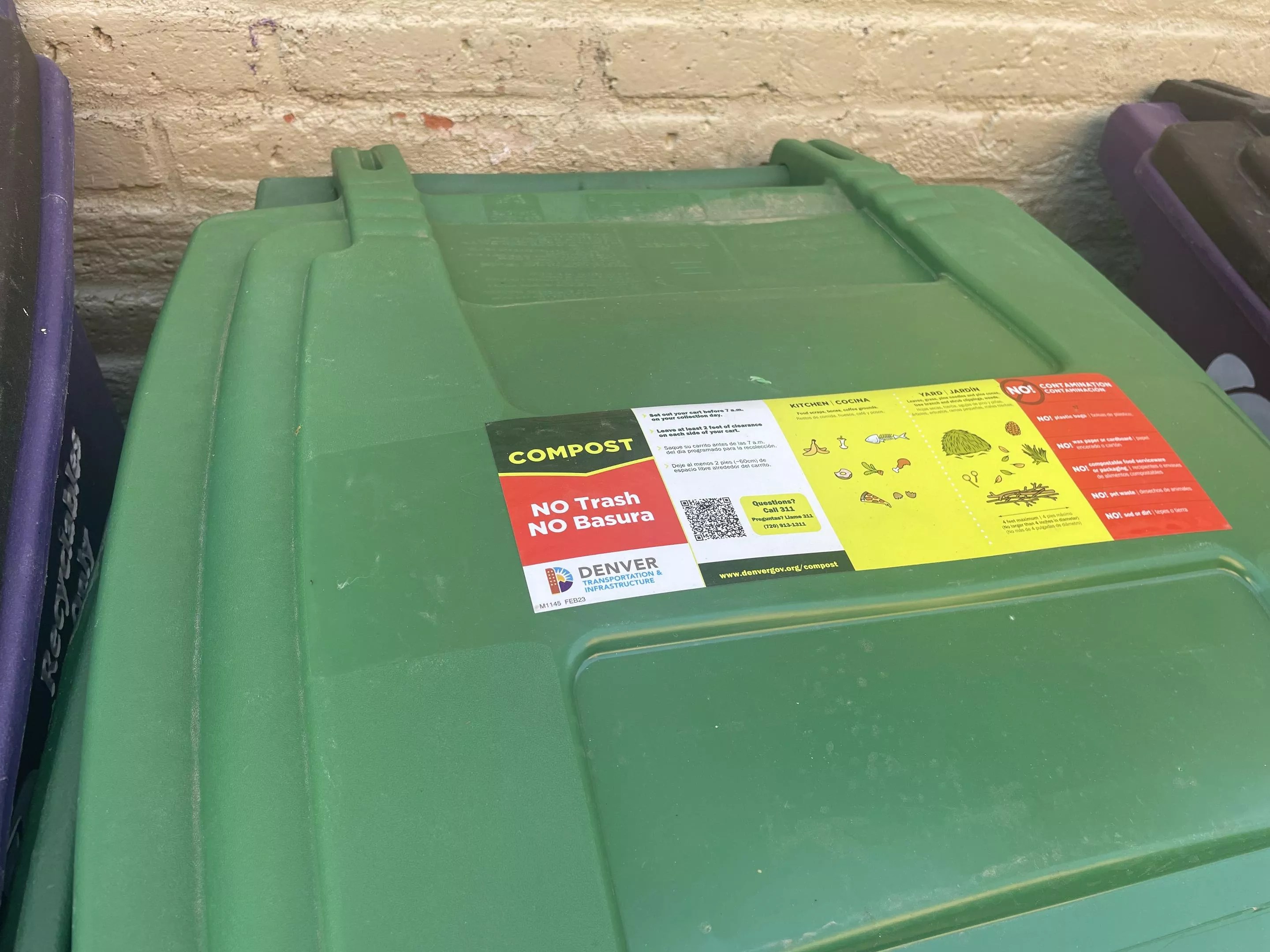 Denver’s compost bins have labels explaining how to use them.