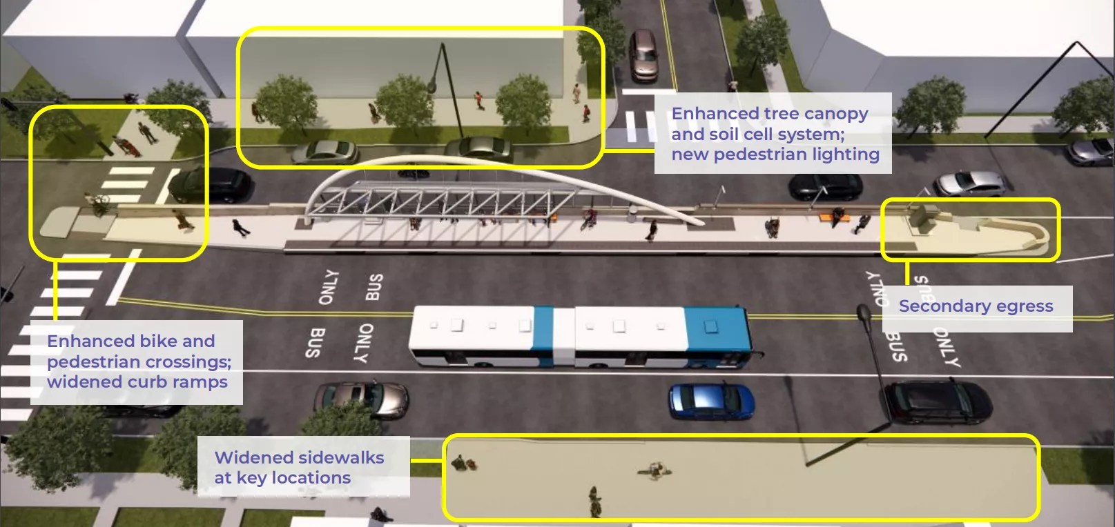During a community webinar on July 23, engineering consultant Charlie Alexander, who works with BRT-planning firm Fehr & Peer, told residents that the city is also considering safety measure like increasing the number of red lights on those corridors and extending no-parking zones to make it easier to see people crossing the street.