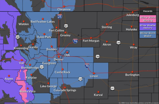 That’s impossible to guarantee until the flakes start falling, but chillier temperatures and a storm will be rolling in soon, that’s for sure. Denver is under a winter storm watch from 6 a.m. on Wednesday, March 13, through 6 a.m. on Friday, March 15, with the National Weather Service (NWS) predicting six to twelve inches of snow in Denver and Boulder. Or maybe a lot more, which is why Denver Public Schools has canceled school for March 14, and the City of Denver has announced that all offices will be closed that day.