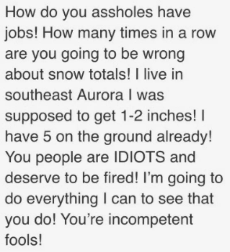 In contrast, one TV weather forecaster actually issued a public apology for failing to more accurately predict the flaky deluge, which measured in the six-to-twelve-inch range over a much larger portion of the metro area than had been expected.
