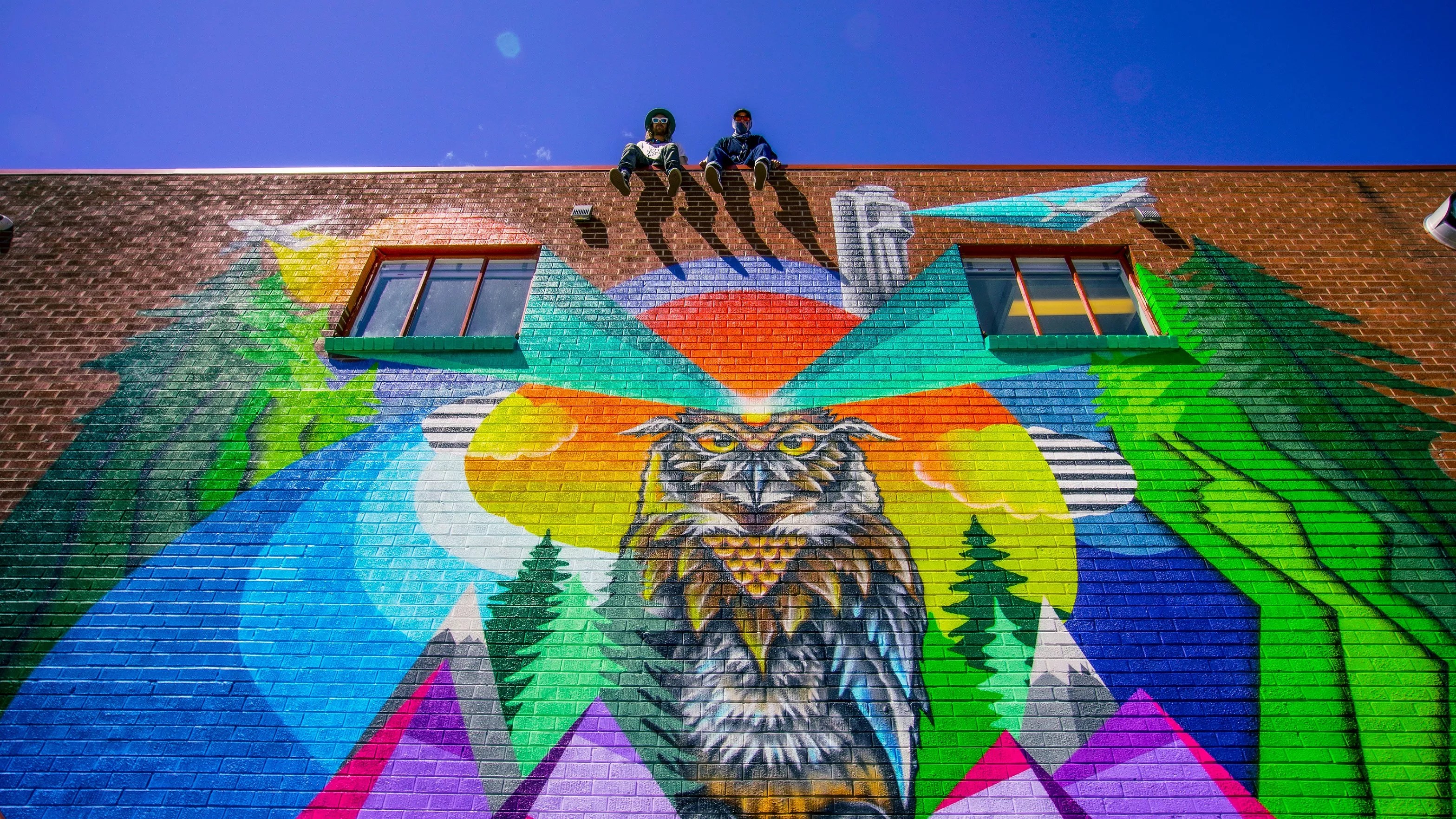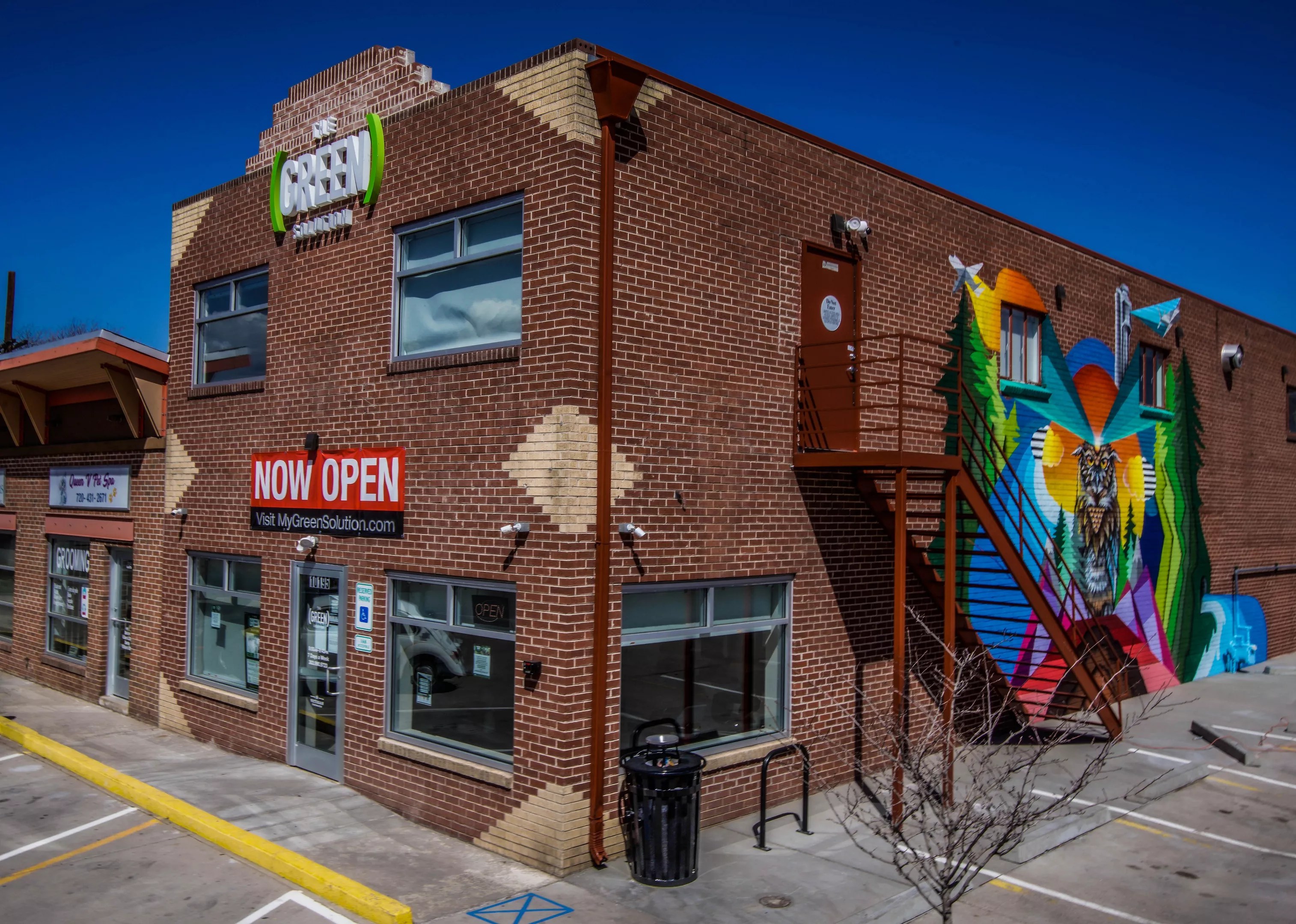 Milbery has worked with businesses ranging from Pabst Blue Ribbon to Illegal Pete’s to Westword in the past, and now the marijuana industry is on his list of collaborators. His latest mural, a giant, all-seeing owl perched in the middle of the Rocky Mountains, can be spotted on the side wall of the Green Solution‘s new dispensary at 10195 East Montview Boulevard in Aurora.