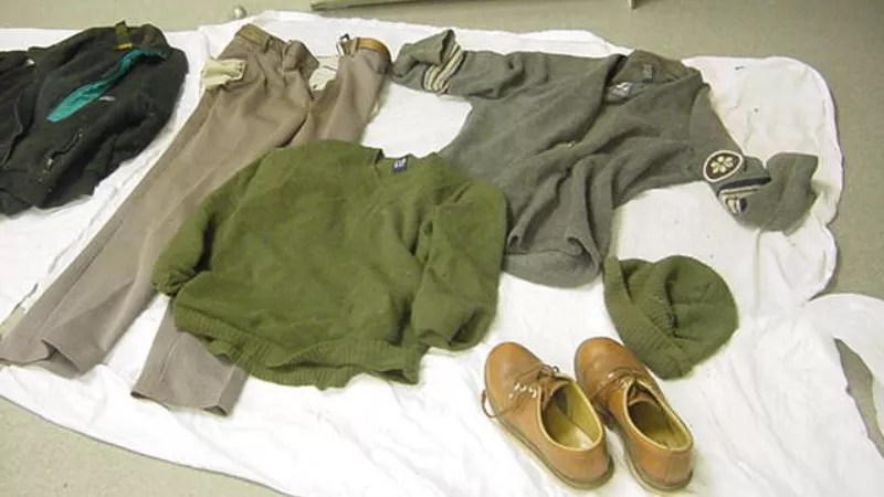 Clothing worn by a man found dead on February 22, 2002, near the Denver Waste Management building.