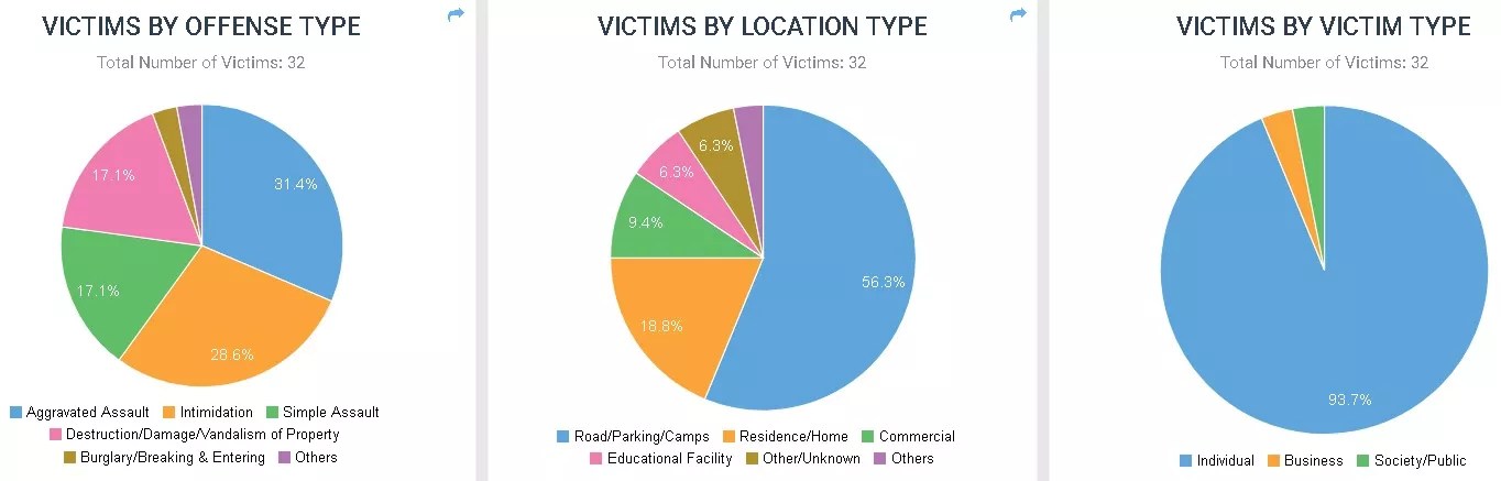 Here’s the hate-crime breakdown for Denver, followed by the Colorado stats. The graphic below takes a look at hate-crime victims by offense type, location and victim type.