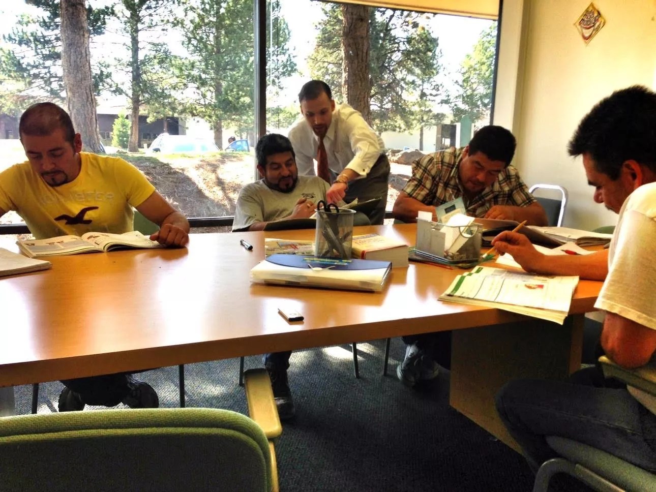 She and others in the class can certainly relate. Pedro shows them a PowerPoint presentation and asks each student to name in Spanish the objects in the pictures he’s showing: markers, pencils, paper…things that these twenty-, thirty- and forty-somethings learned to identify in kindergarten.