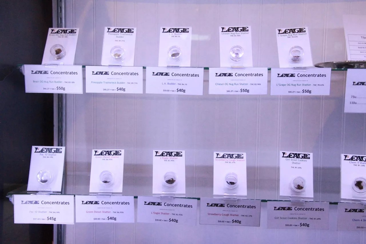 L’Eagle, a Denver dispensary, displays both the retail price and the final price after sales tax is included.