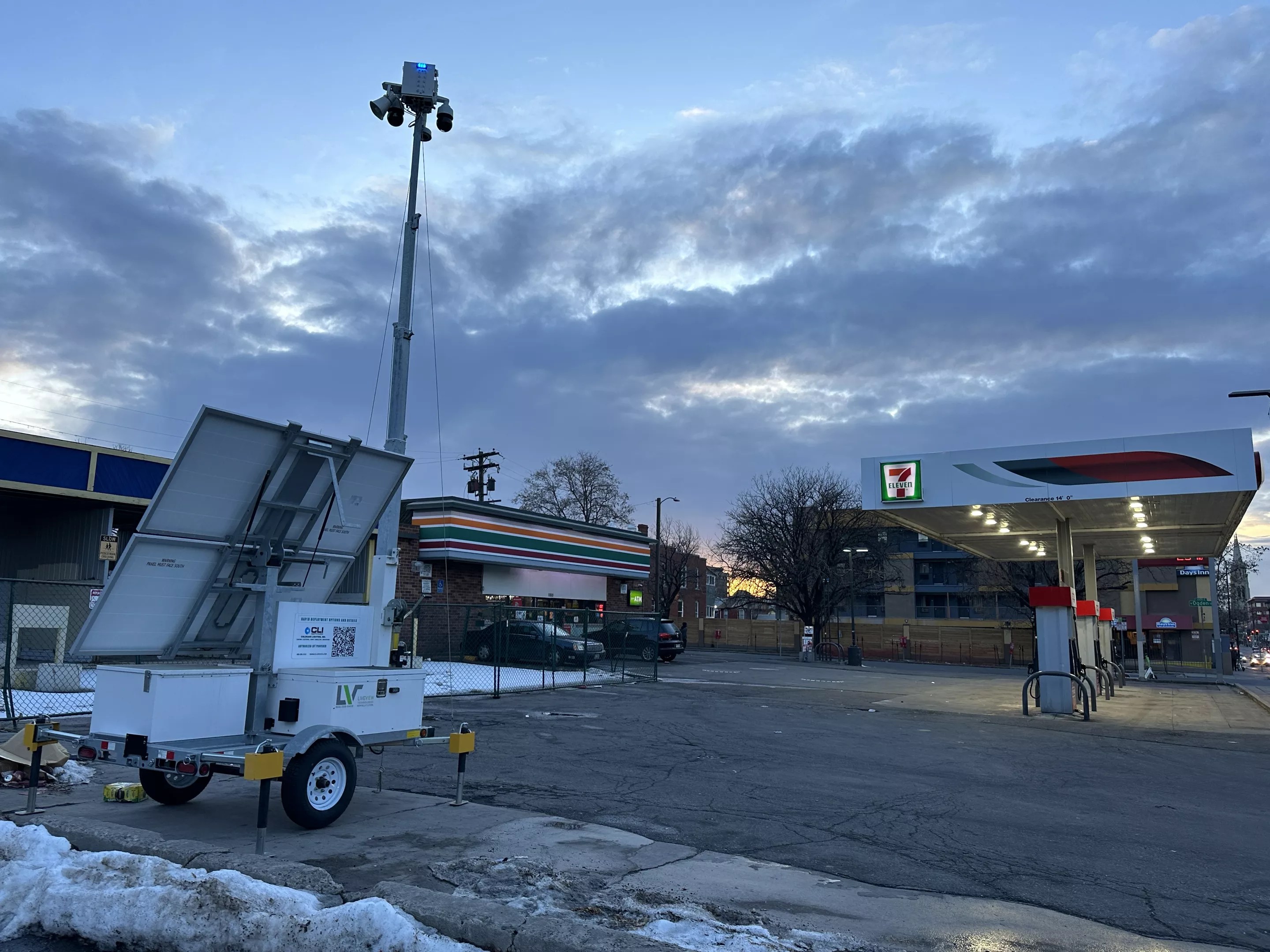 The DPD’s surveillance tower at the 7-Eleven near Ogden Street.