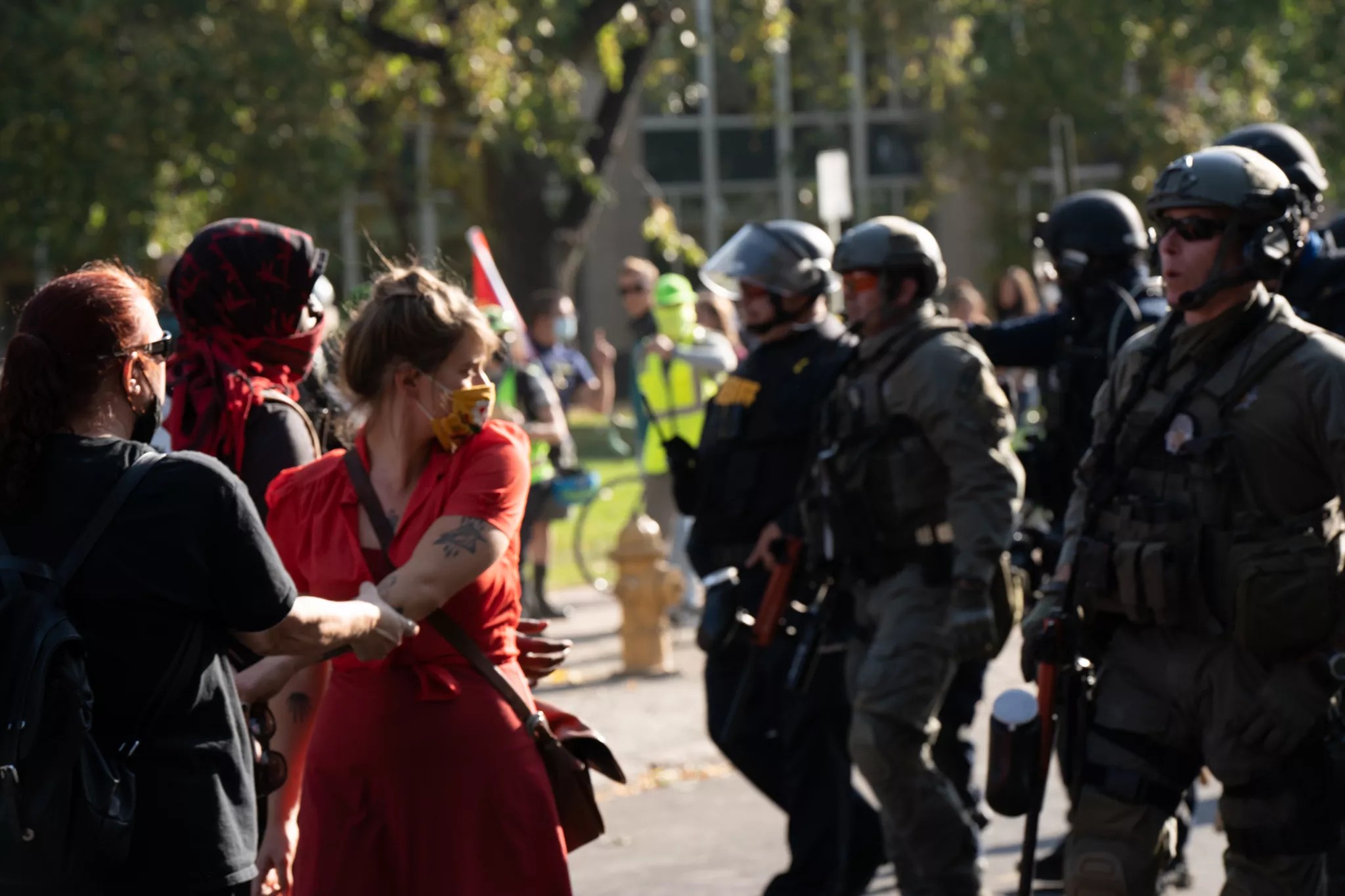 The dueling protests at Civic Center Park – the so-called “Patriot Muster” and the BLM/Antifa Soup Drive scheduled as a counter-protest – were winding down at about 3:30 p.m. on Saturday, October 10, when a shot rang out by the Denver Art Museum.