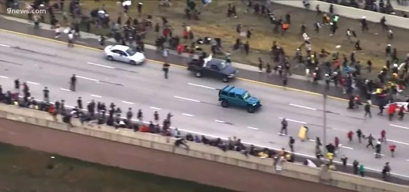Chaos erupting in Aurora at the site of the police station, the courthouse, and more… Police say this protest is no longer peaceful, that people are now throwing objects at officers. They are breaking windows. And we just learned there is a fire that has been set inside of the courthouse… Hours ago the peaceful protest was interrupted by gunshots as a Jeep [sped] through a crowd of hundreds of people on I-225. We know two people are shot…