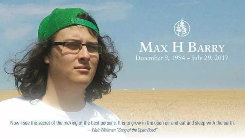 “Max Barry, age 22, graduated in June from the University of Puget Sound. Max attended Eakin Elementary School, West End Middle School, and MLK High School before attending and graduating from University School of Nashville. He is survived by his parents, as well as grandparents Joyce Brody, Jan Mueller, and Ken Mueller.”