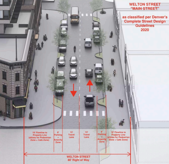 Denver’s Complete Streets Guidelines classify Welton as a Main Street, which calls for active street-level uses.