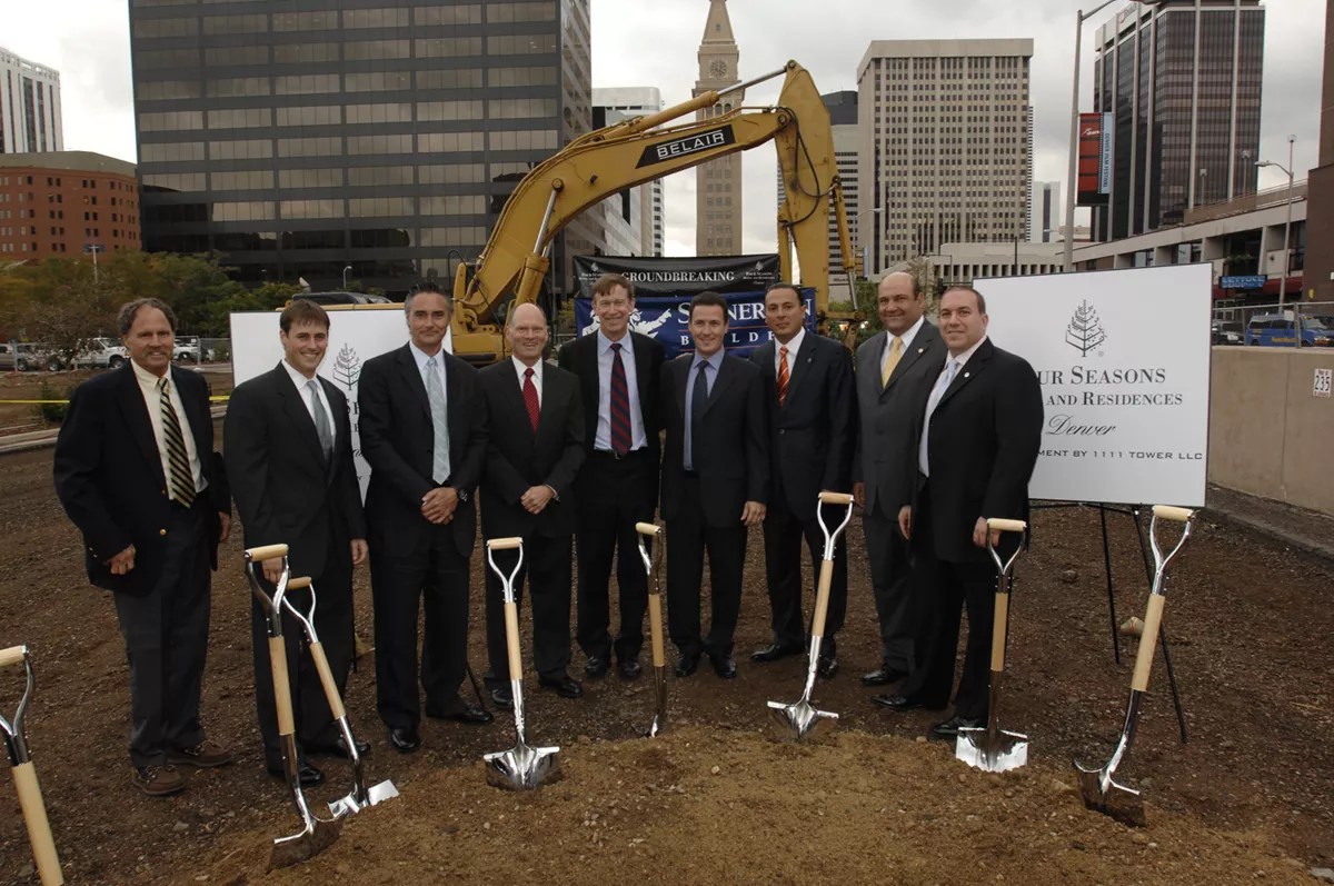 Participants in the 2007 groundbreaking for the Four Seasons included Dan Wolf (second from left), Michael Brenneman, Jeff Selby, then-Mayor John Hickenlooper, and (third from right) Salom