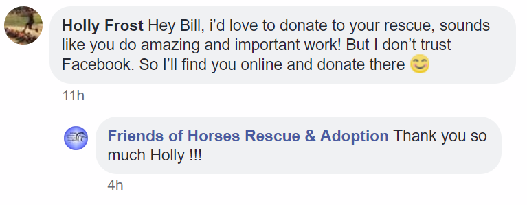 But the troubles facing Friends of Horses, which Stiffler has avoided addressing publicly, have been discussed on the very same Facebook page. And in September, Stiffler marketed an unprecedented end-of-summer sale of horses, advertising tens of rescues for purchase. The advertisements have continued as Stiffler tries to convince clients that the rescue is here to stay.