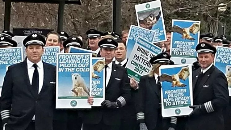 Frontier pilots at a December 2017 protest in Denver.