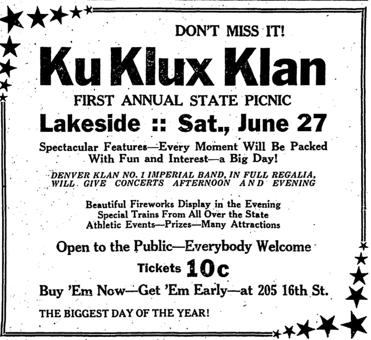 But Colorado proved to be surprisingly fertile ground for the Klan. The Centennial State didn’t have the South’s legacy of slavery, but its own brief on race relations was hardly bloodless, from the 1864 slaughter of hundreds of Arapaho and Cheyenne women and children, an atrocity that became known as the Sand Creek Massacre, to an 1880 anti-Chinese riot in Denver, to the scores of people executed without benefit of trial by frontier lynch mobs. (The “court of Judge Lynch” remained open decades after the frontier closed; one of the most repugnant murders occurred in 1905, when Preston Porter Jr., a fifteen-year-old Black railroad worker accused of raping and killing a twelve-year-old white girl, was chained to an iron stake outside the eastern plains town of Limon and burned alive in front of a crowd of 300, including numerous newspaper reporters.) Denver’s white citizens may have considered themselves less prejudiced than their benighted relatives in the Jim Crow South, but a color line ran through the town, segregating housing and schools, theaters and swimming pools, restaurants and parks. Discrimination against Catholics and Jews was less pervasive but still significant, keeping them clustered in ethnic neighborhoods and almost completely absent from the ranks of judges, councilmen, or other positions of authority.