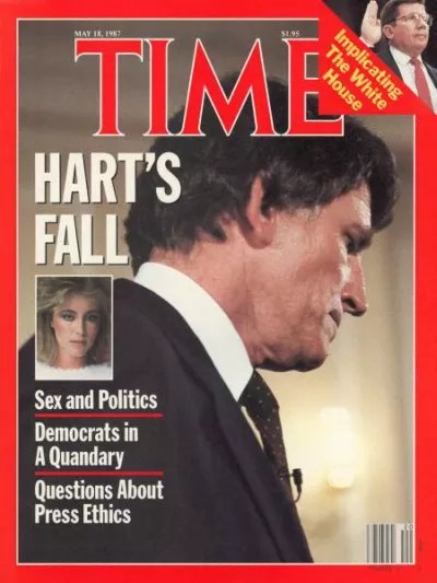 GH: It came out the same day as the infamous Miami Herald report [which claimed that a young woman had been seen coming out of Hart’s Washington, D.C., residence the previous night]. They didn’t place me under surveillance as a result of that sentence….