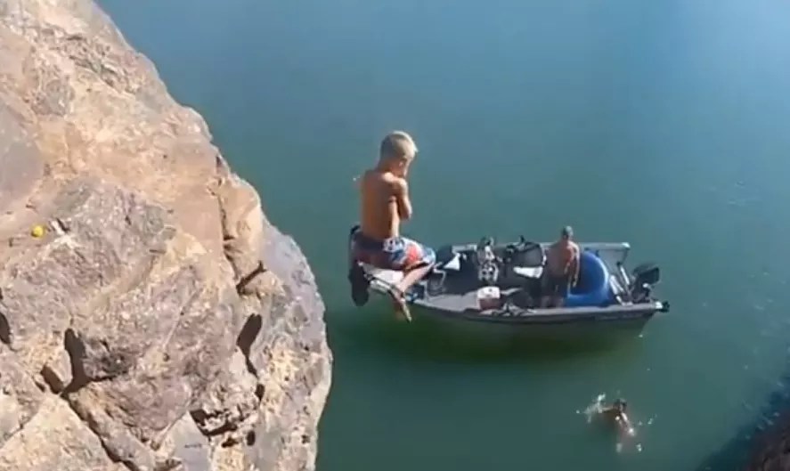 This image from a video showing a child cliff-jumping dates back to 2012.