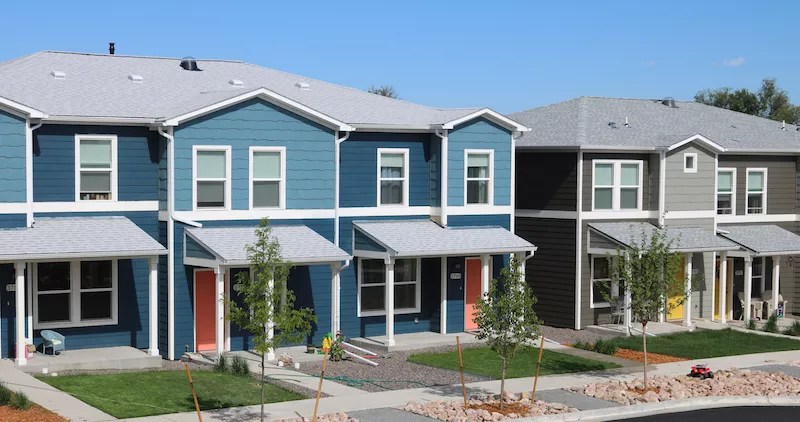 Fronted by small, tidy lawns and freshly planted trees, the neatly constructed homes line two streets on the 4.35-acre site, Habitat’s largest Denver development. When it’s completed, it will house over 350 people.