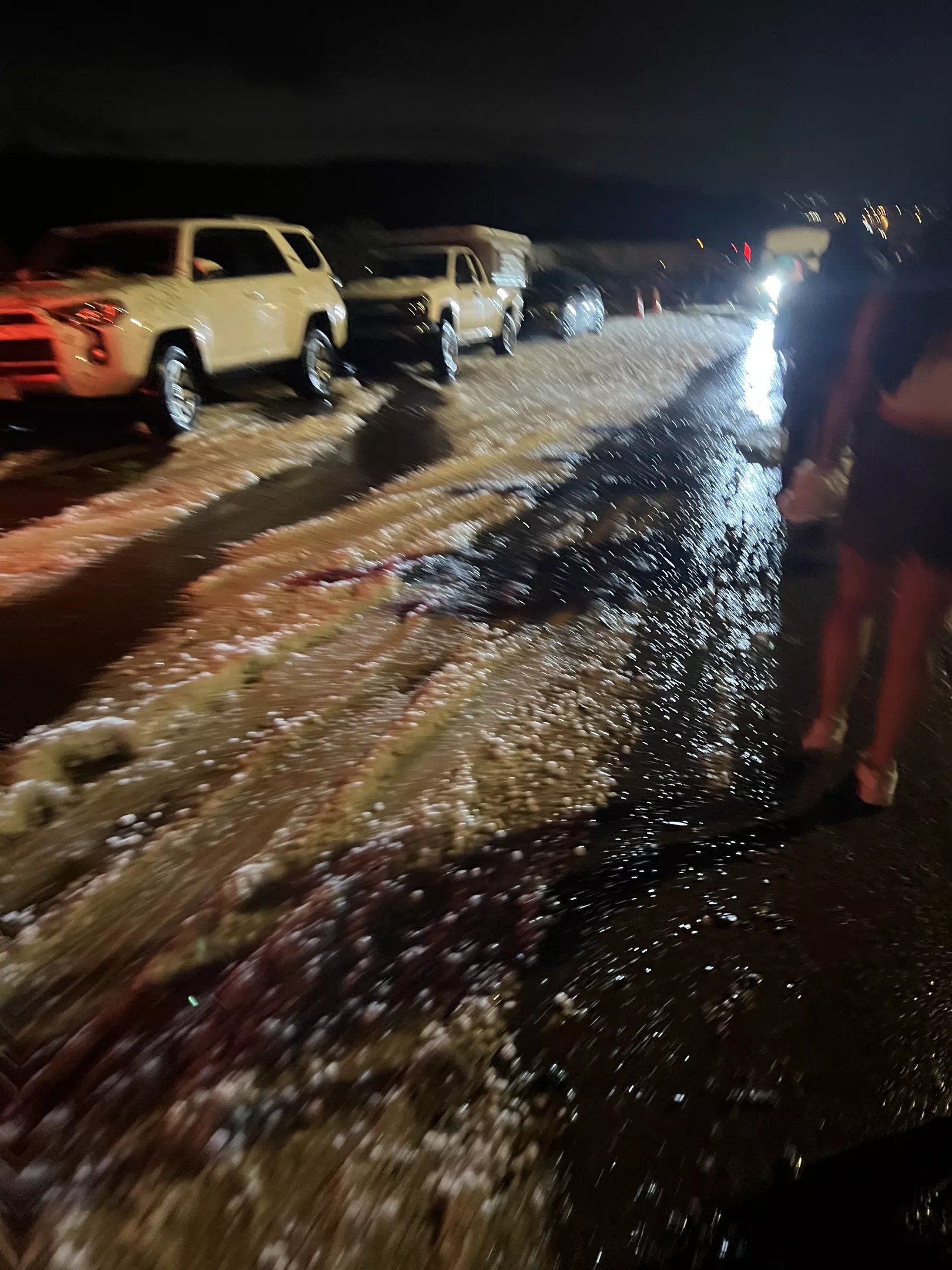 By the time the hail calmed down and Castro and her friends were able to get back to their car – which was covered in dents – the icy projectiles had piled up on the ground several inches deep.