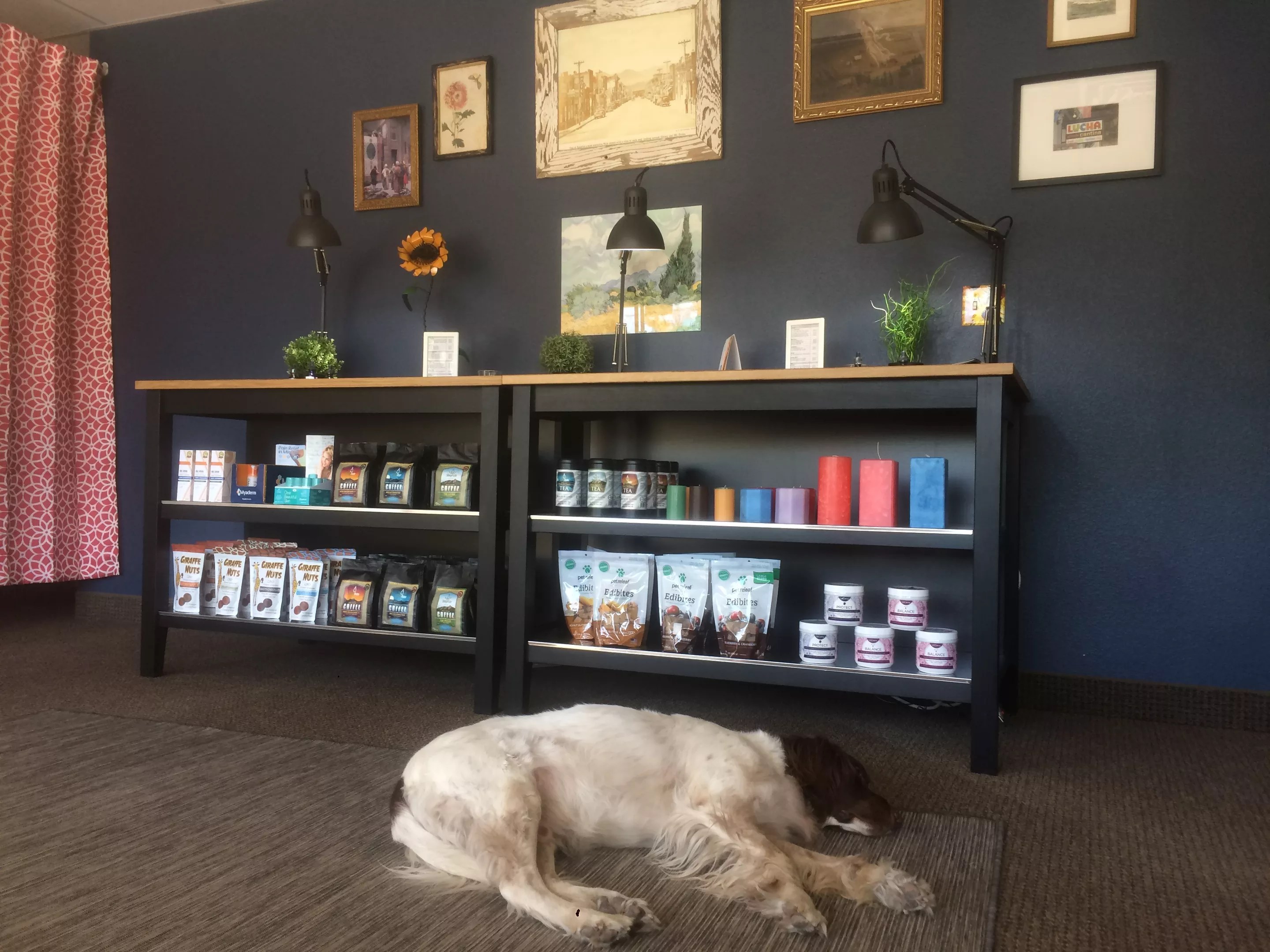 The shop’s founders, Chuck Holcomb and Dave O’Connor, first envisioned using the space as the headquarters for a website selling CBD and hemp products, but then figured the brick-and-mortar route was an easier way to start. So instead of blacking out the windows and operating online, the duo opened the doors to customers interested in CBD dog treats, lotion, coffee, tea, edibles, acne products and water-infusing powder, as well as high-CBD hemp flower and concentrates for vaporizing and smoking.