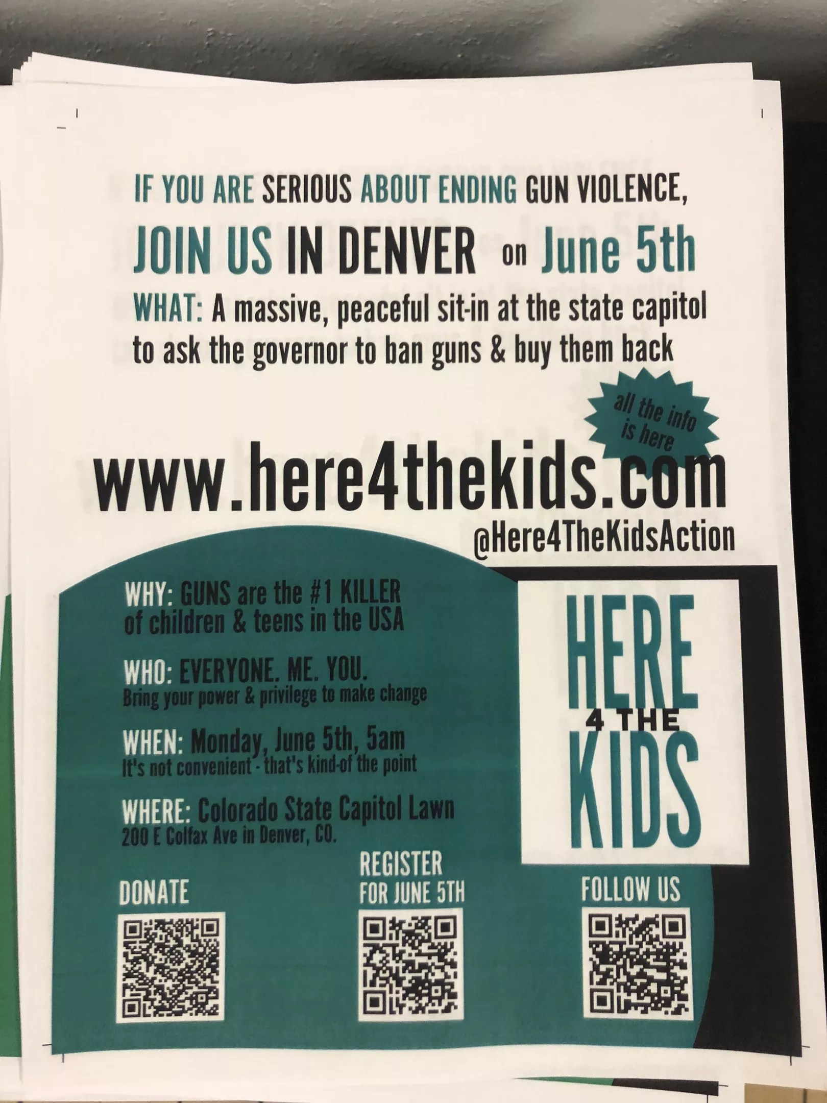 Here4TheKids leaders say they expect tens of thousands of participants to show up for the June 5 sit-in in Denver, where they’ll demand that Governor Jared Polis issue an executive order banning all guns.