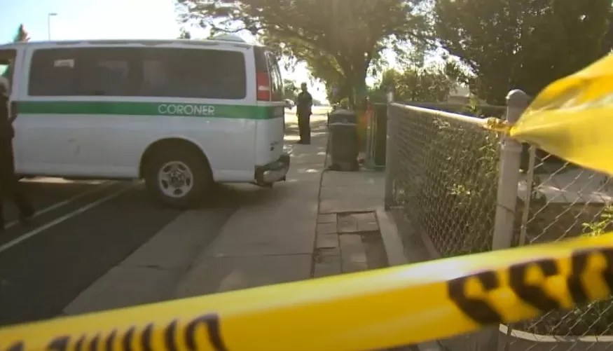 A coroner’s office van leaving the Black residence after the shooting.