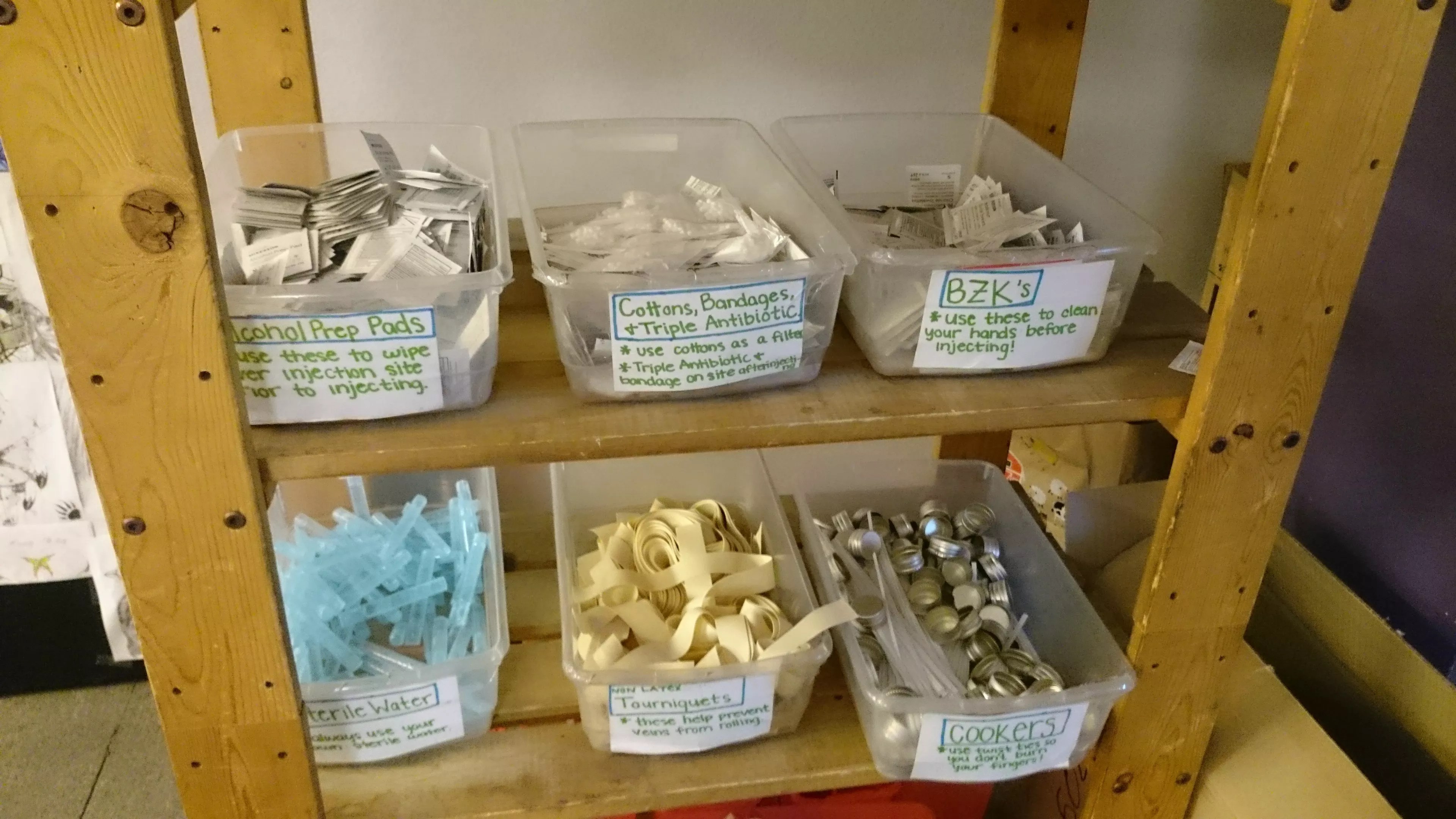 Assorted supplies available to participants at the Harm Reduction Action Center.