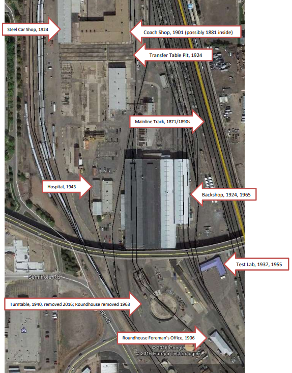 The other buildings at risk are the 1901 coach shop, which is the oldest remaining structure on the site, the 1937 testing laboratory and the 1924 steel car shop. Historic Denver also wants to preserve the turntable pit: While not a structure, the pit used to hold a giant turntable used to move locomotives from one shop to another. The turntable itself is now owned by the Illinois Railroad Museum.