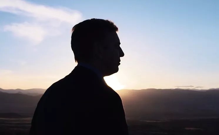Victor Mitchell in silhouette, as seen in a screen capture from one of his 2018 gubernatorial campaign commercials.