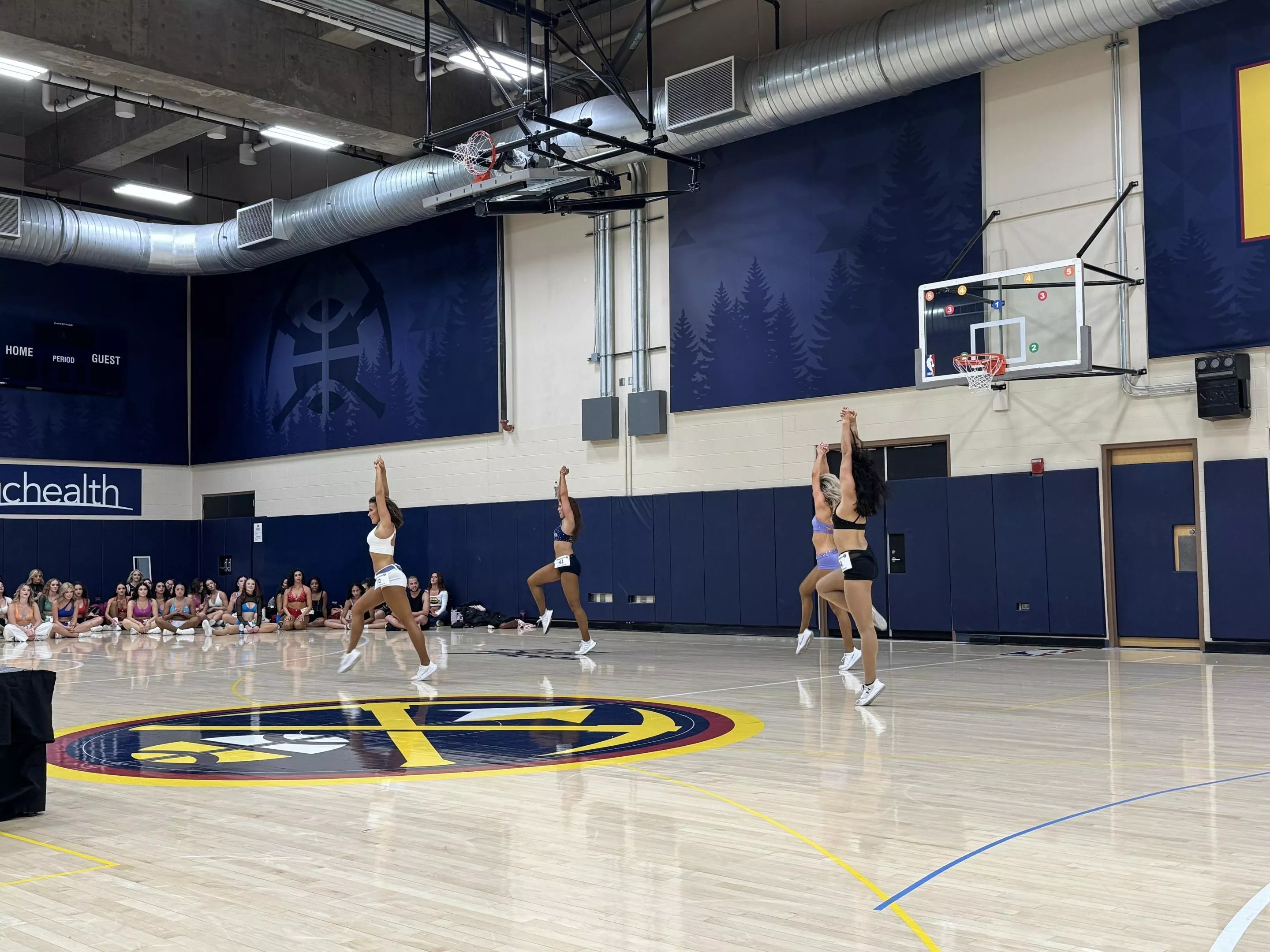 On July 12, one side of the Denver Nuggets practice court was filled with the dancers who’d made it into the extensive audition process, mimicking the upper-body movements of a quartet performing choreography they’d all just learned.