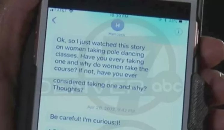 A screen capture of a text about pole dancing from Denver Mayor Michael Hancock to Leslie Branch-Wise.