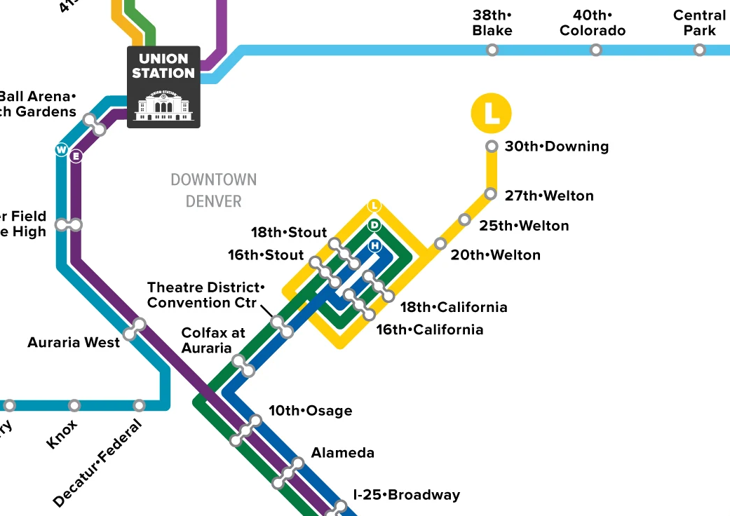 With the downtown light rail loop, D, H and L line trains get turned around or rerouted to Union Station before they enter the loop, which is just past the Colorado Convention Center and runs up to 20th and Welton streets in the Five Points neighborhood.