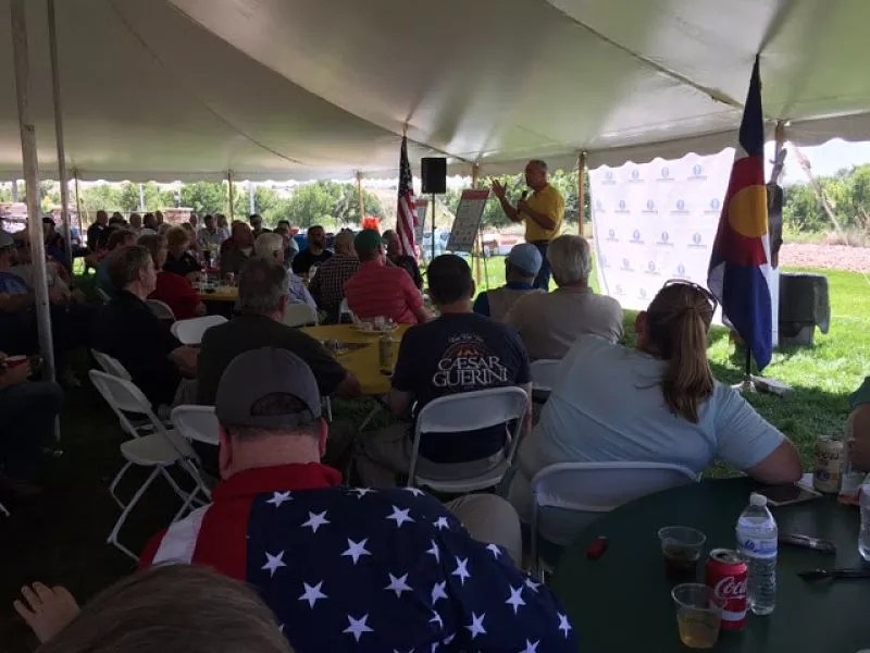 Guns, not gaffes: Ken Buck addresses the ATF crowd.