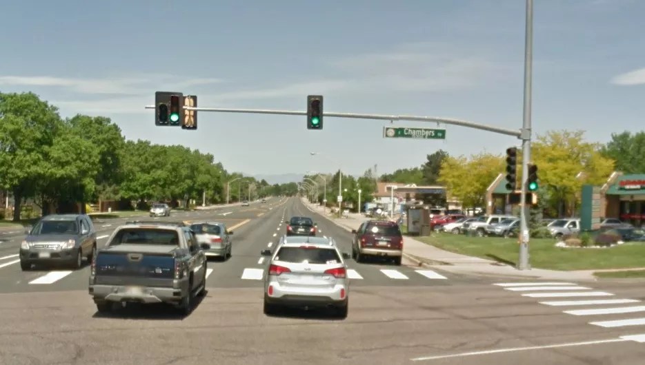 The intersection of East Smoky Hill Road and South Chambers Road.
