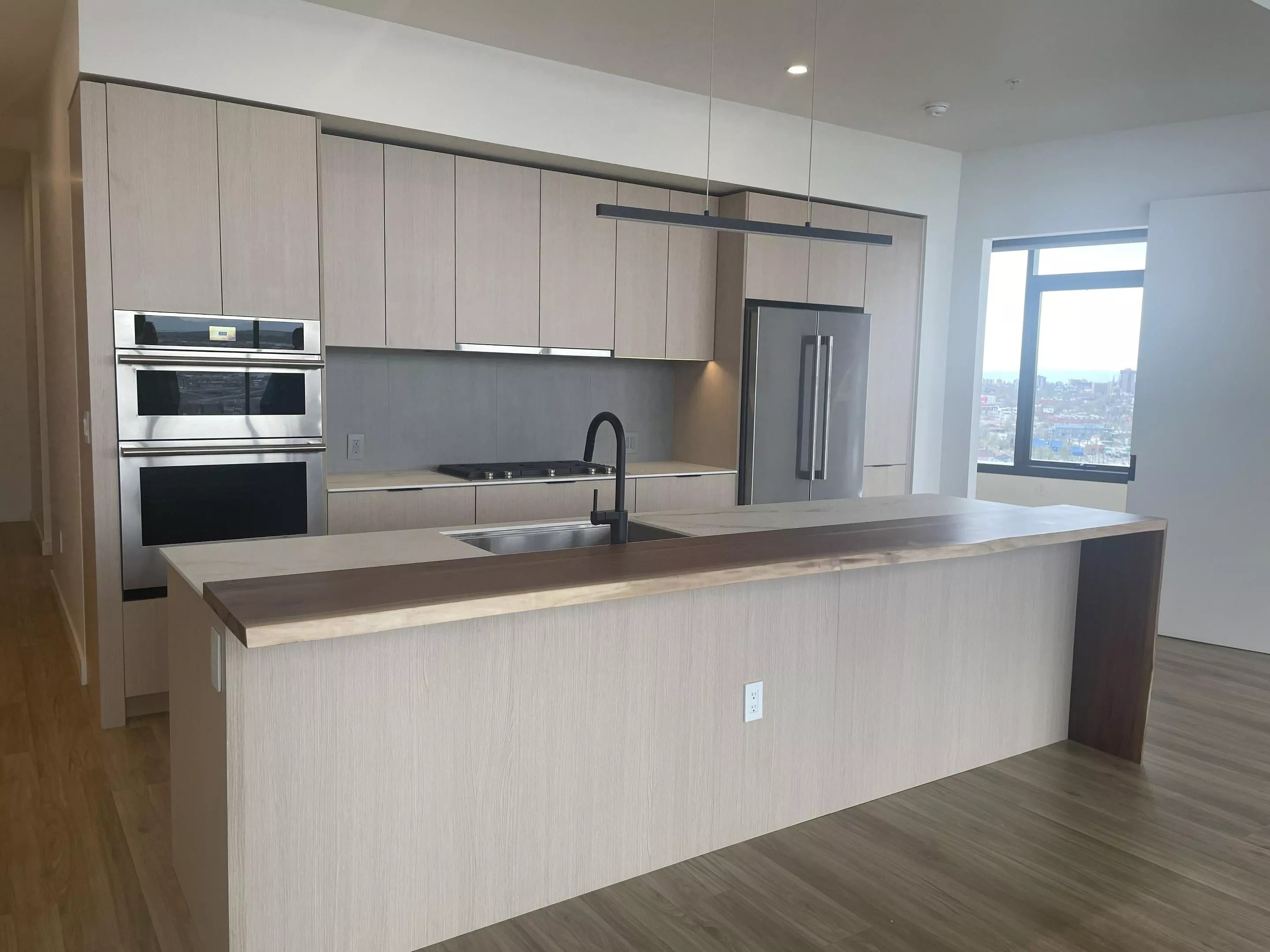 Cost: Fourteen income-restricted units start at around $1,800 per month. The largest and priciest apartment, a 2,610-square-foot penthouse, costs $16,000 monthly. The average unit cost is $5,000 per month. The pictured unit is a 1,890-square-foot premium unit with two bedrooms and two and a half bathrooms, and costs just shy of $8,400 a month.