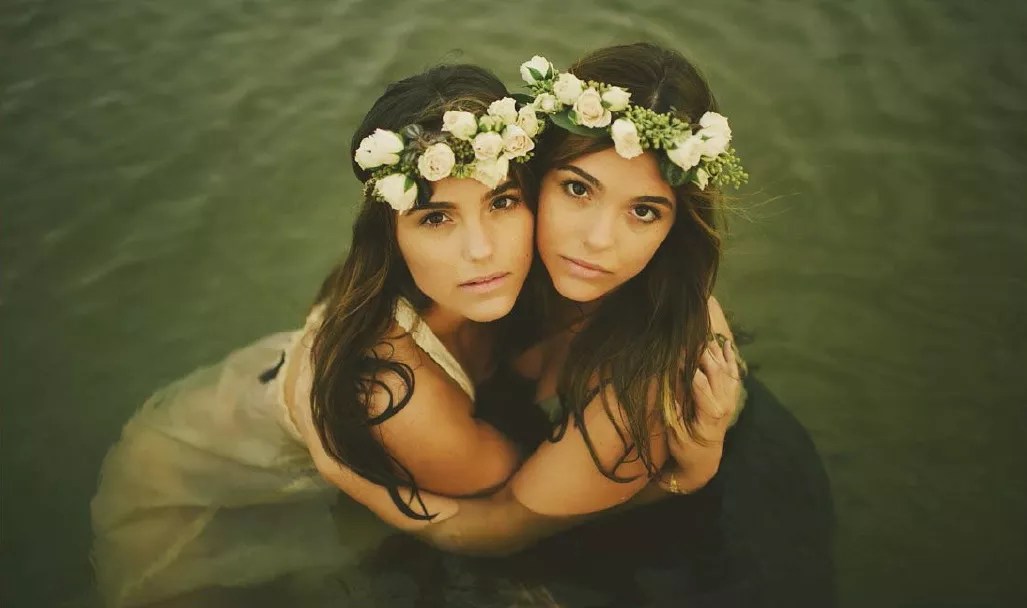 Philippa McCully, right, with her twin sister, Caroline, in a 2013 family photo.