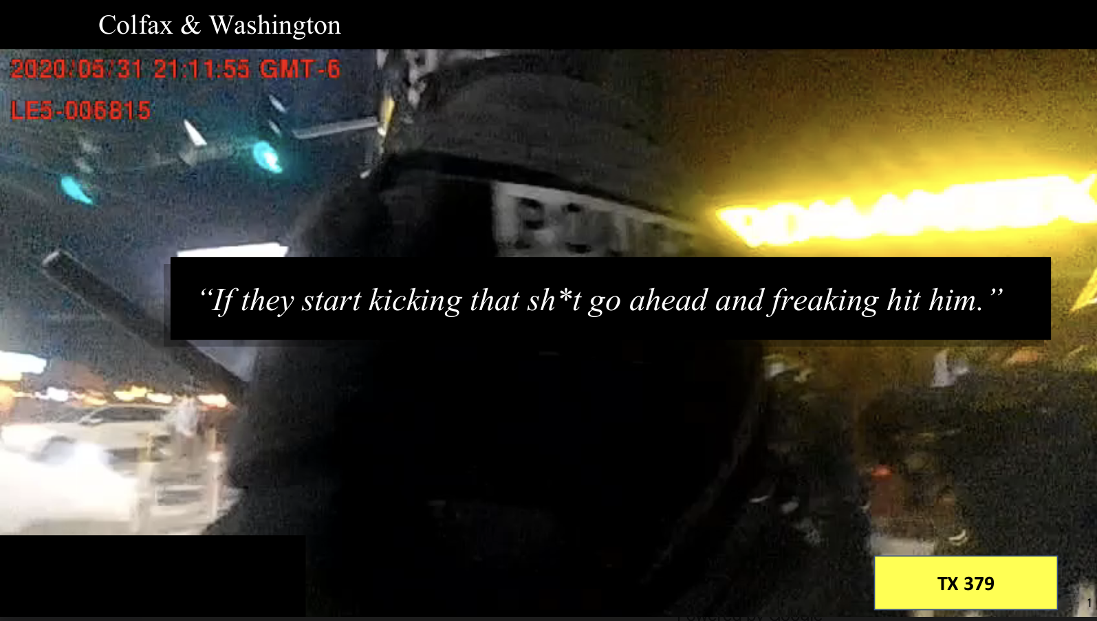 “If they start kicking that shit, go ahead and frickin’ hit ’em,'” said Aurora Police Department Sergeant Patricio Serrant, a defendant in the case, to his officers that night.