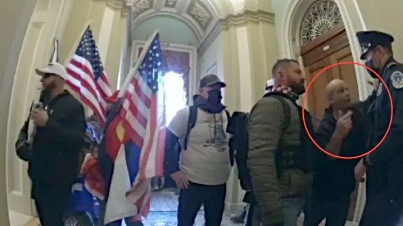 In this FBI screen capture, Jacob Clark can be seen getting in the face of a law enforcer.