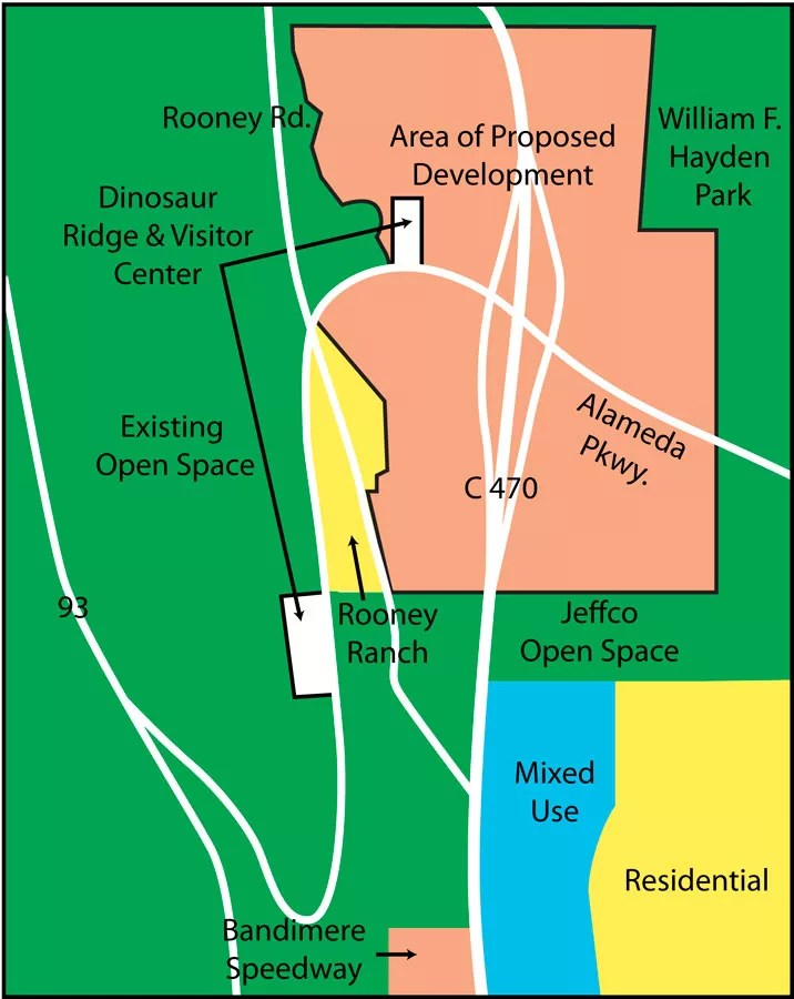 It’s a courtship not quite as old as the hills, but just as primal as dinosaur sex rituals: the Real Estate Stomp. It involves an amorous developer, bearing promises of jobs and tax revenues and other sweets; smitten and pliant bureaucrats, seemingly just as eager to consummate the arrangement; and a chorus of irate neighbors, open-space advocates, environmentalists, dinosaur fans and others who, while passionate in their own way about Dinosaur Ridge and the area surrounding it, just aren’t in the mood to be wooed.