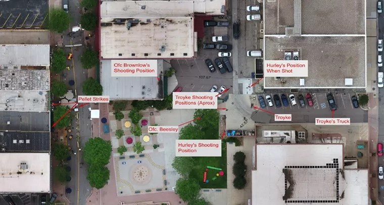 In King’s view, these factors served as justification for Brownlow’s choice to shoot, despite Hurley’s “heroic actions that day.” But the lawsuit contends that “Officer Brownlow had no reason to believe there was a second active shooter, nor did he consider that possibility until after he shot Mr. Hurley.”