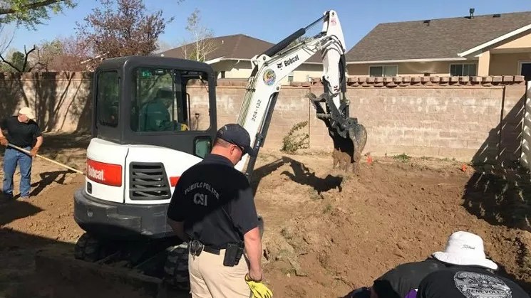 A Pueblo Police Department photo from April shows the excavation behind the former home of Donthe Lucas.