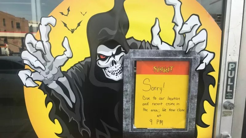 Nonetheless, it’s clear that Spirit staffers are well aware of current lawbreaking in the Golden Triangle neighborhood. A sign on the front door, as seen in the photo above, reads, “Sorry! Due to our location and recent crime in the area, we now close at 9 p.m.”