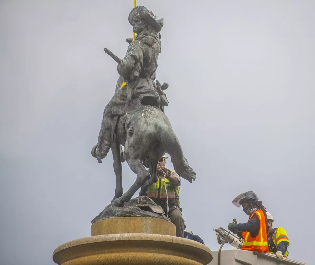 The city didn’t have a chance to take down the sculpture dedicated to Columbus (though not depicting him): That came down the same night the letter arrived. The next day, the city removed Kit Carson, who will become exhibit A in the city’s new community process to review public asset naming…and which already installed assets should remain.