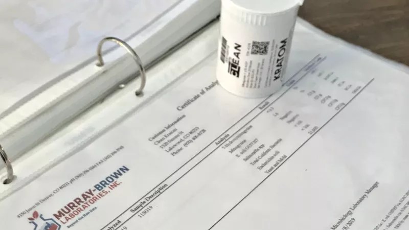 A lab report provided by Clean Kratom Wellness Center.